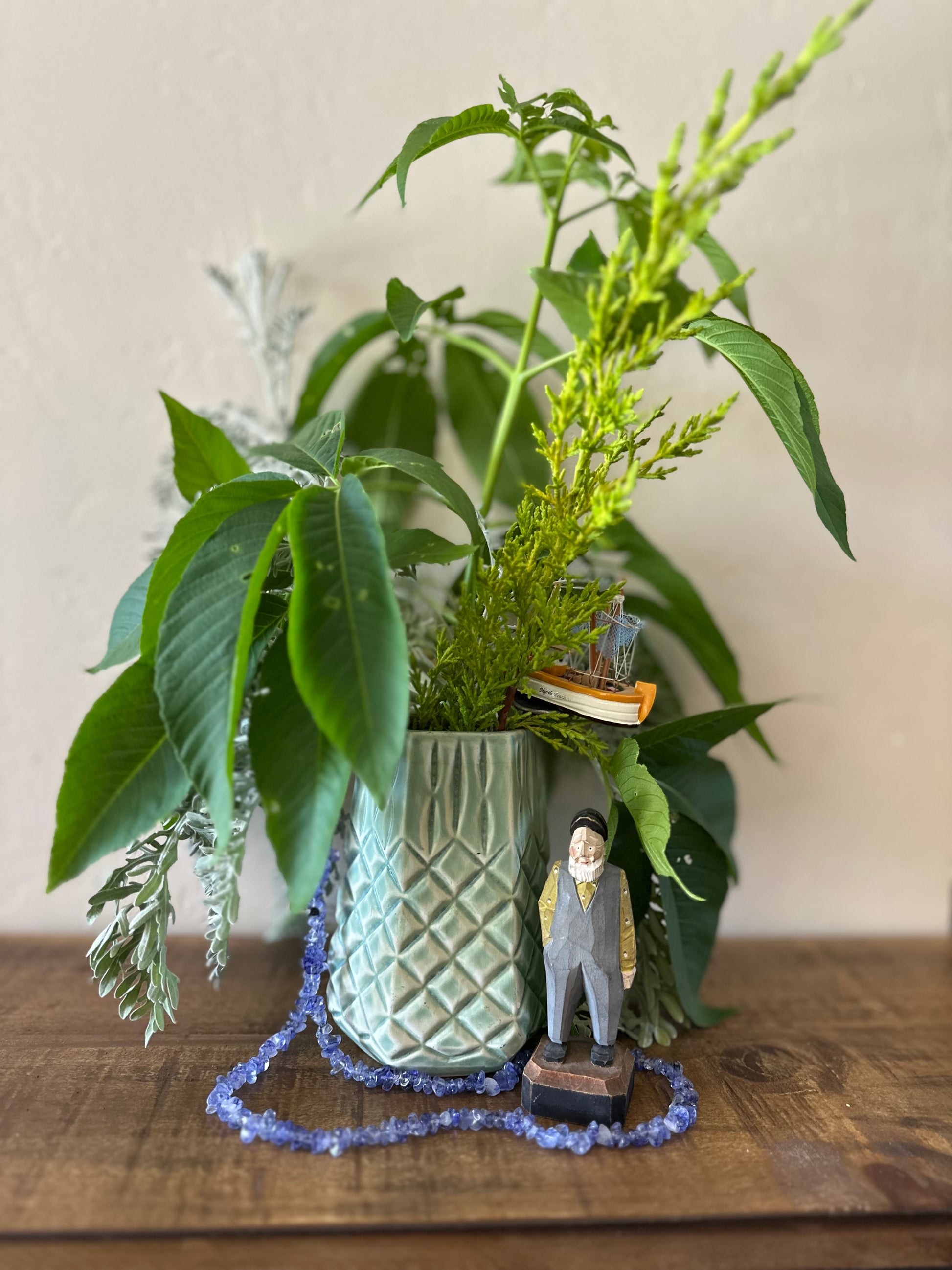Classic Flou Flou Shelf styled with a sailor, boat, & blue quarts